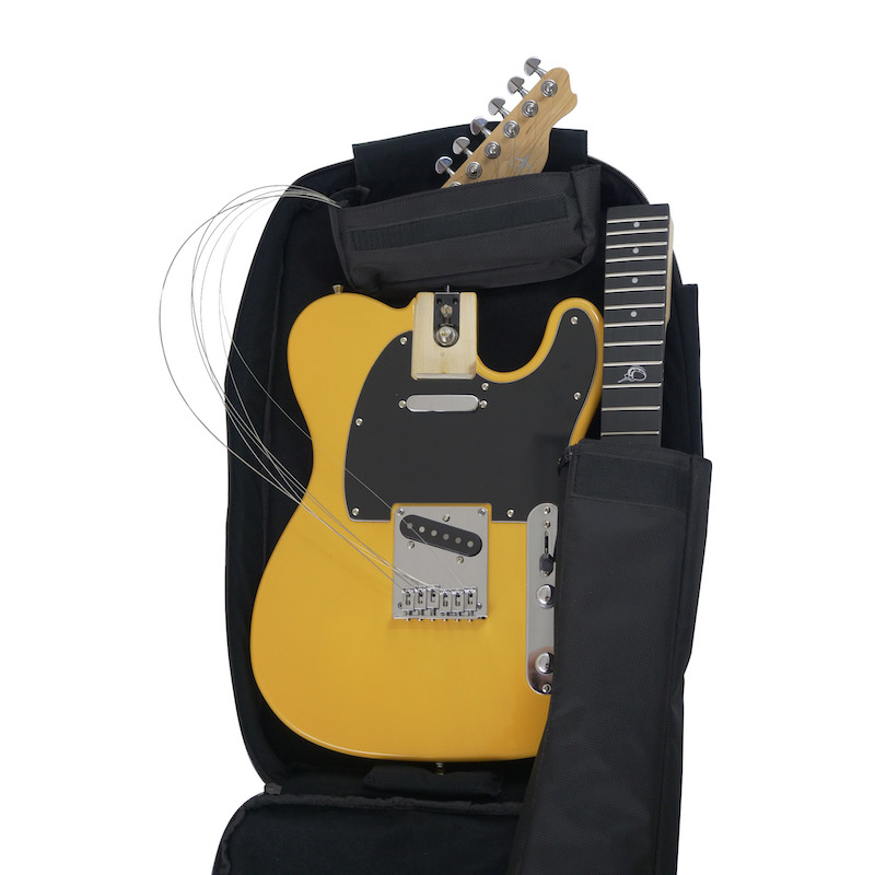 - Custom full-featured travel backpack fits the entire collapsed guitar with ample room for all your gear – cables, pedals, laptop, clothes and more! It even converts to carry the fully-assembled guitar.