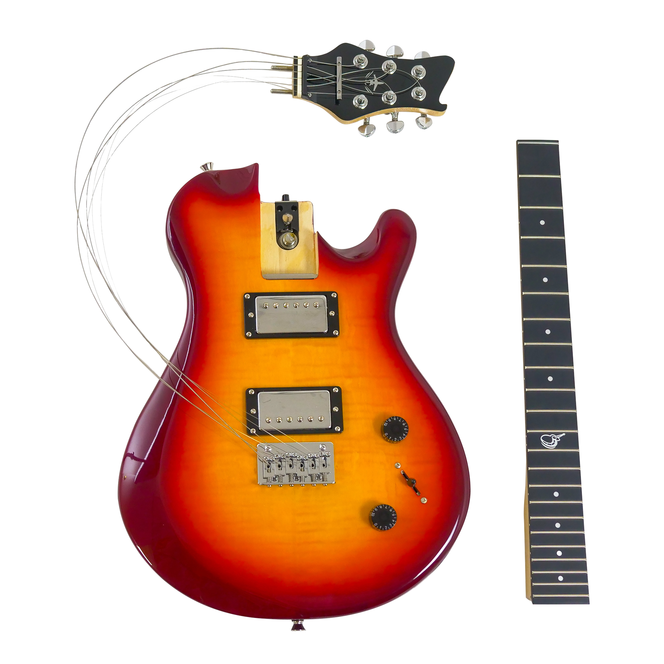 - The Overhead™ Electric travel guitar uses a patented collapsible neck system along with a removable headstock that enables assembly/disassembly in under a minute