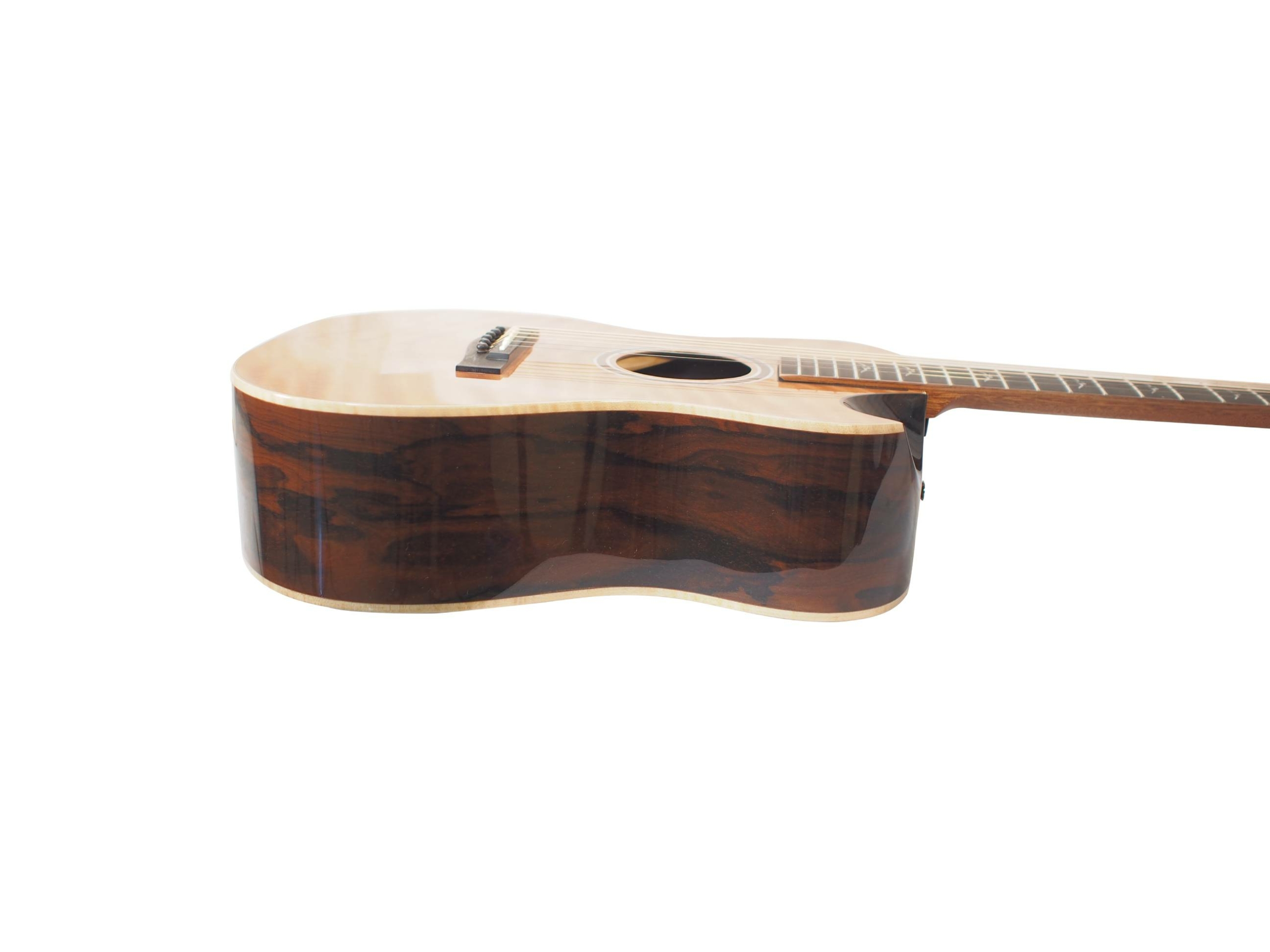- Bone nut, compensated bone saddle, and ebony bridge pins all help produce the the tone preferred by acoustic guitarists.