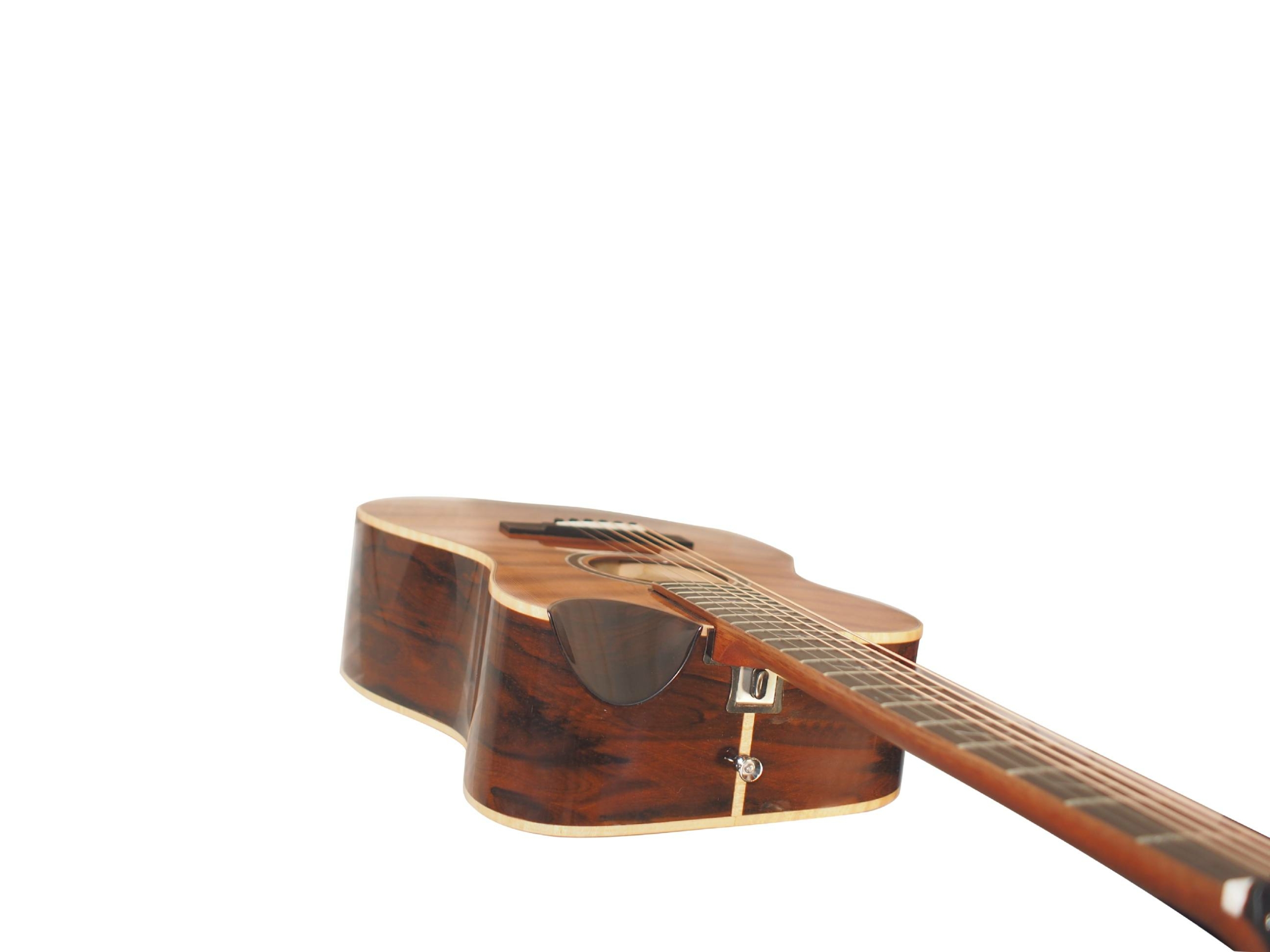 $749.99The FP412 FirstClass Parlor Overhead is a collapsible traditional Parlor travel guitar that features a solid sitka top with solid African Mahogany back. It collapses to carry-on roller case that’s 22*14.5*9 inches, and assembles in 20 seconds with our patented detachable neck system that’s guaranteed for life. A full 24.5 inch scale, a versatile 1 3/4 nut width, best-in-class components, and a Manzer wedge ergonomic design give this collapsible Parlor amazing playability, and astounding bass and volume! Comes with our proprietary passive tri-piezo pickup system. (If viewing product category list, click on product image on the left to view full specs, otherwise scroll down for specs and media.)