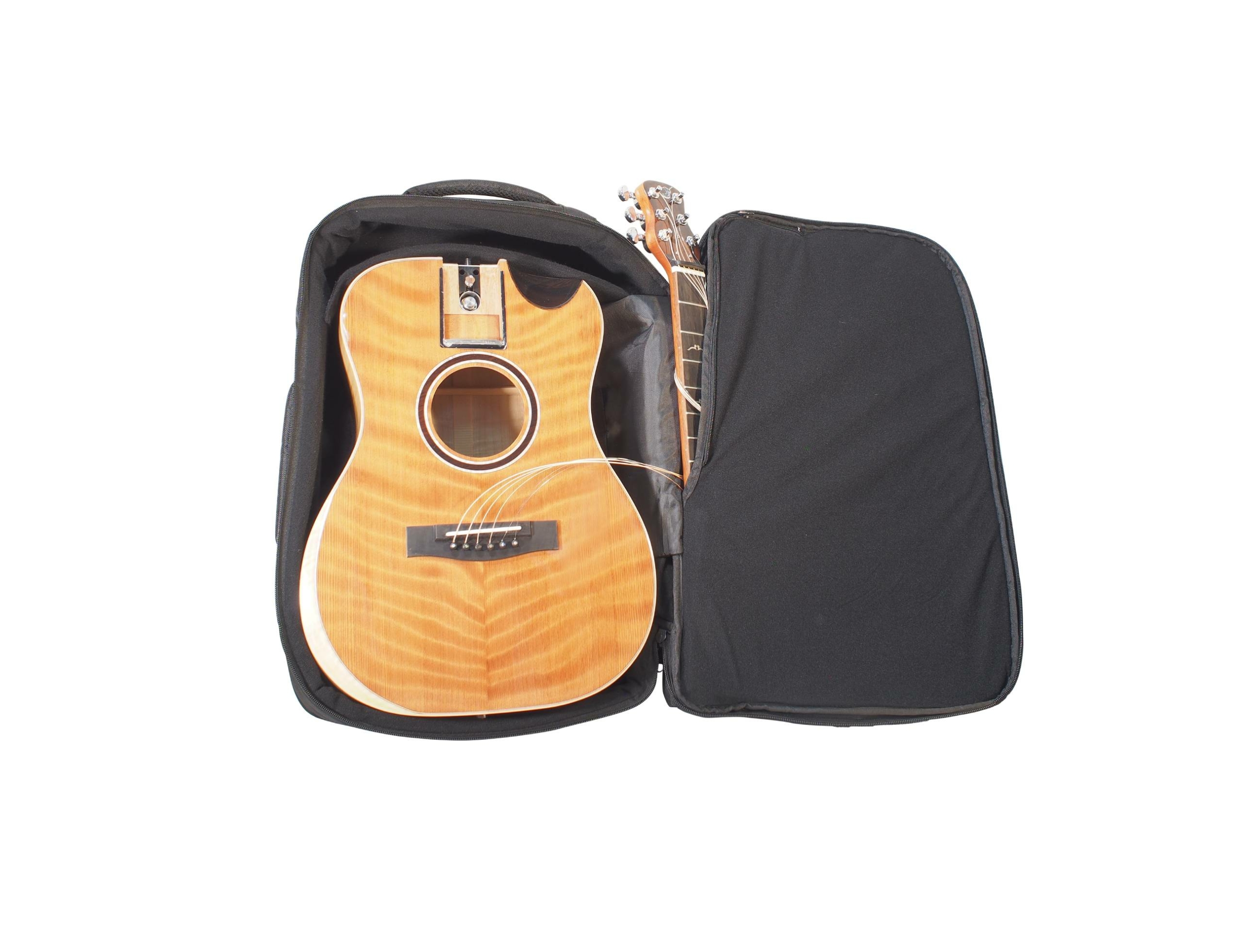 - After packing in its travel backpack the Overhead travel guitar can be carried-on to most major airlines, easily fitting in the overhead bin compartment.