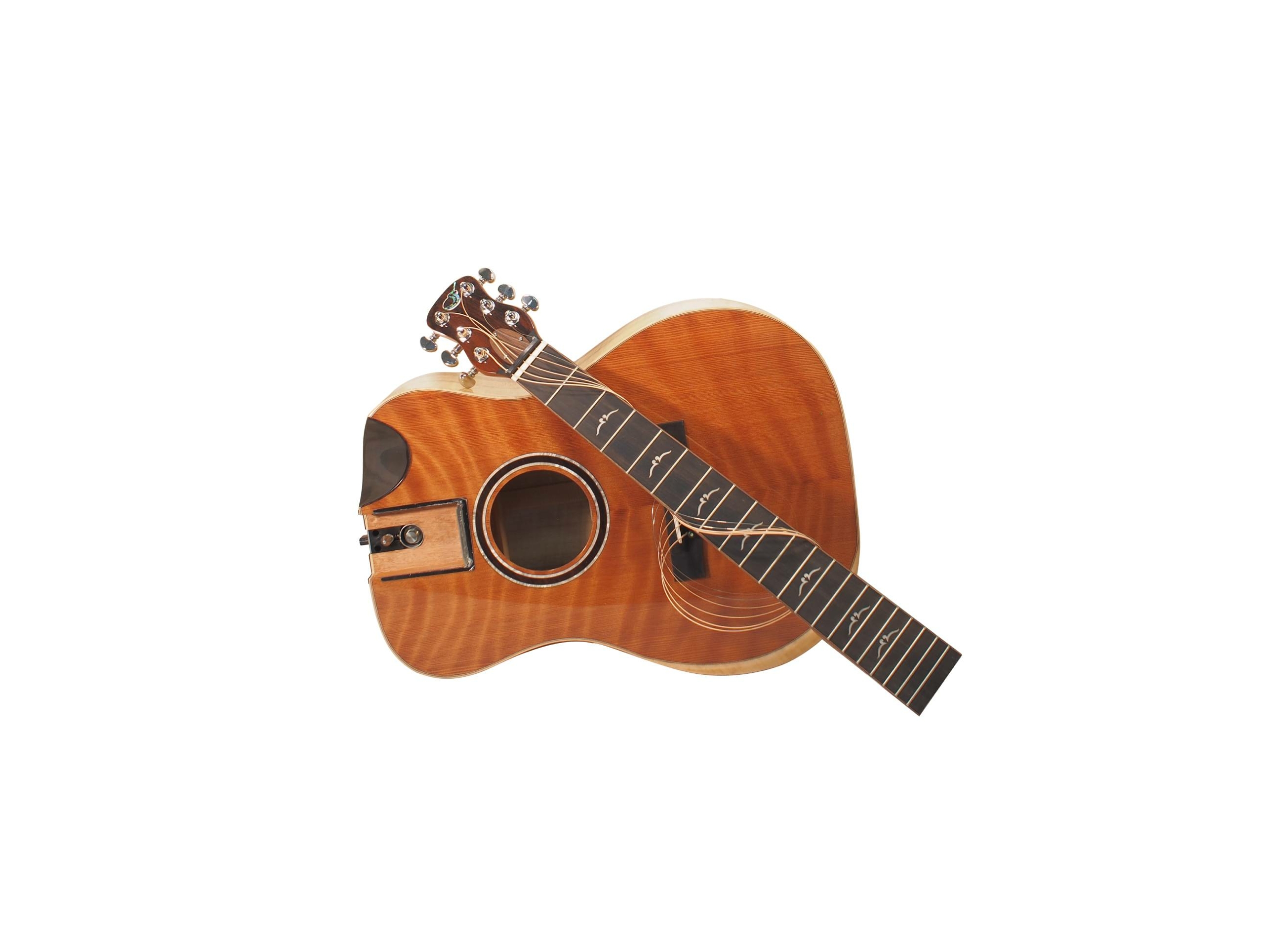 $1,399.99The orange top matte carbon fiber travel guitar collapses to carry-on size of 22*14*9 inches! It assembles in 20 seconds with our patented detachable neck system, and our patented soundboard technology and all-carbon construction create a durable instrument with massive tone. A full 24.5 inch scale, a versatile 1 3/4 nut width, best-in-class components, and a wedged ergonomic design make this the most enjoyable guitar you’ll ever play! Tri-piezo pickup and a full-featured TSA compliant carry-on backpack included.(If viewing product category list, click on product image on the left to view full specs, otherwise scroll down for specs and media.)