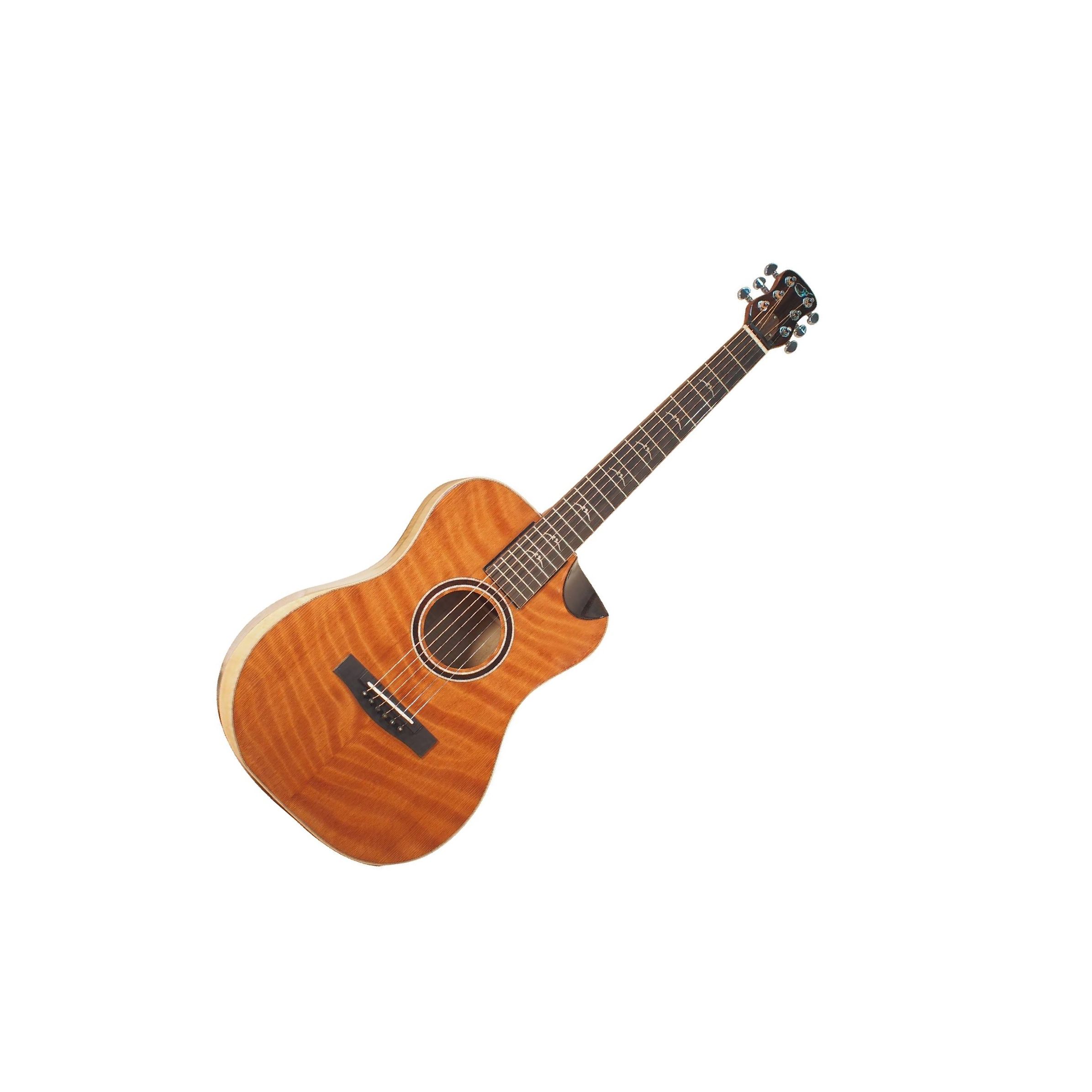 - Bone nut, compensated bone saddle, and ebony bridge pins all help produce the the tone preferred by acoustic guitarists.