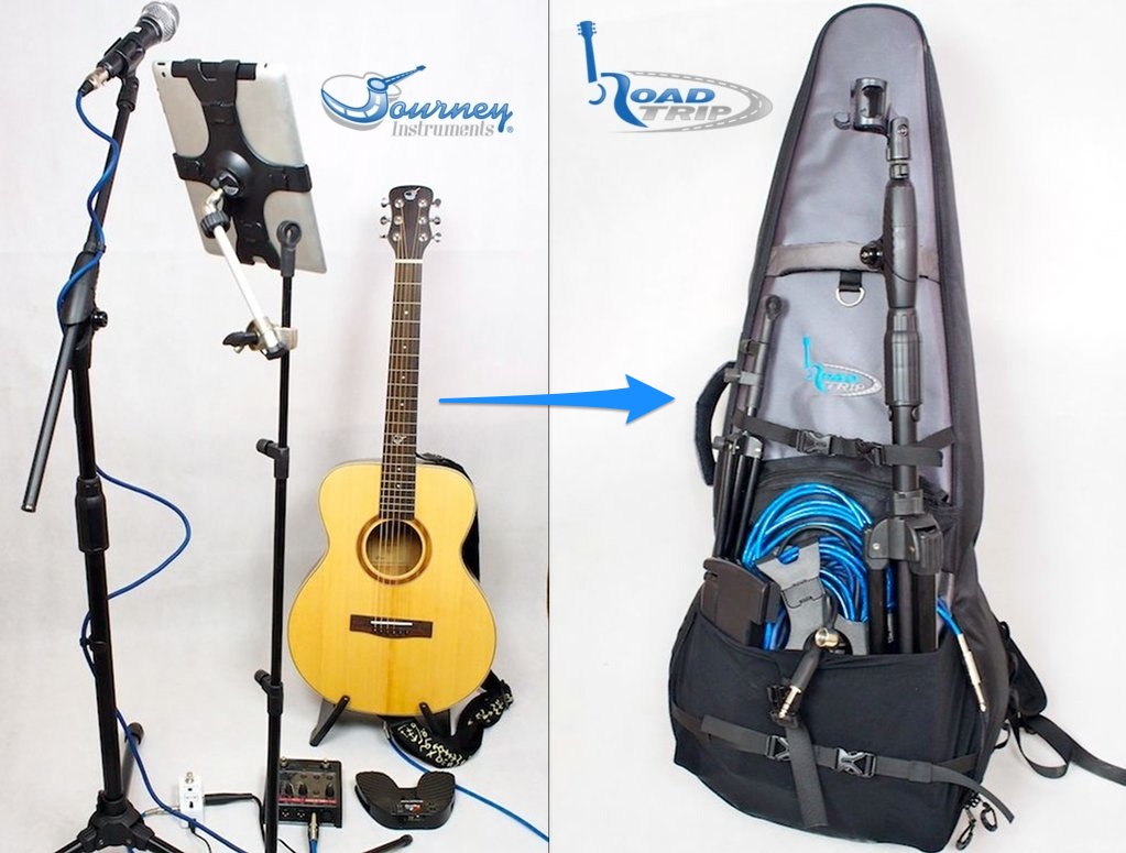 The RoadTripTM travel bag is made with premium ballistic nylon and super-thick high density foam padding and a soft velour lining for maximum protection. It’s designed with patented neck compartments to take advantage of space around the guitar neck and it features a massive pleated front pocket and stretch-mesh pocket, as well as multiple straps and daisy chains so you can easily store all gear for a gig, or pack for a day or two of travel. The RoadTripTM travel bag seamlessly integrates with our travel uke case for a complete travel solution for guitarists who play uke as well.