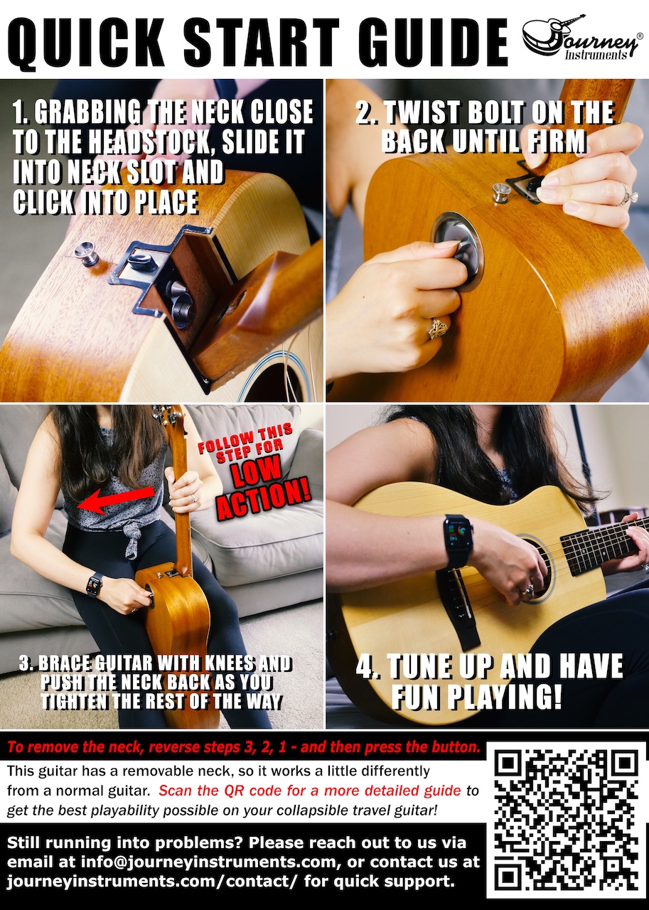 Assembly and disassembly of our patented collapsible neck system is quick, easy, secure, and stable. The procedure below can be used with all our collapsible guitars – whether wood or carbon fiber.