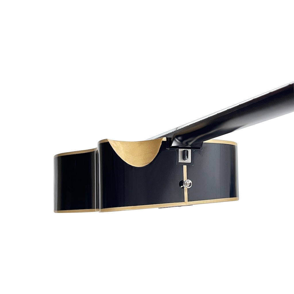 - The wedge design angles the guitar into your body which places the guitar in a comfortable position for fingerboard access and viewing.