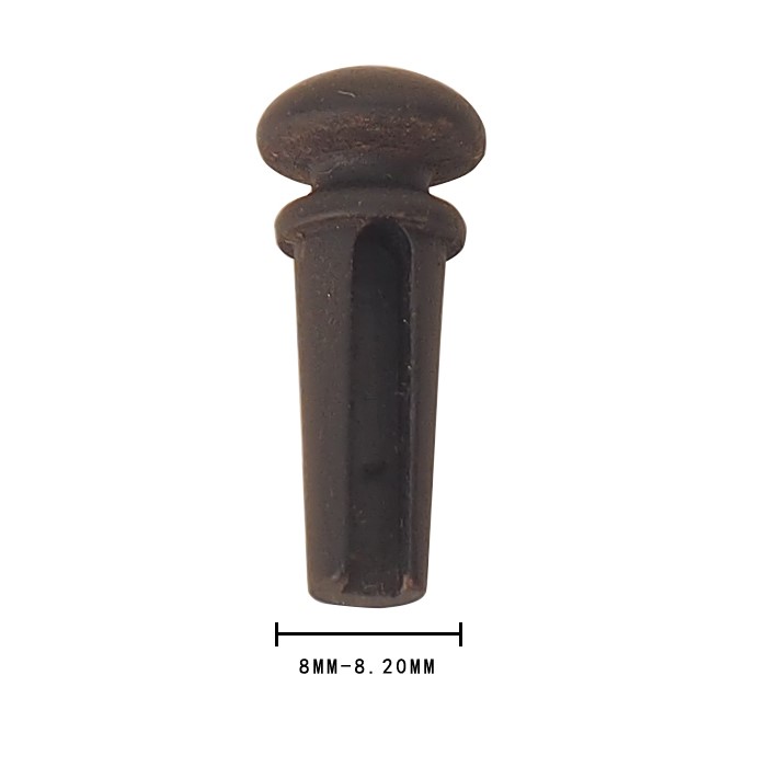 Set of 4+1 ebony bridge pins for acoustic bass. We sell these in sets of 5 just in case you lose a pin. The maximum diameter of bridge pins towards the top is 7.80mm-8.20mm. The Maximum diameter of the bridge pins toward the bottom is 6mm. Tapered length of the bridge pins is 19mm.