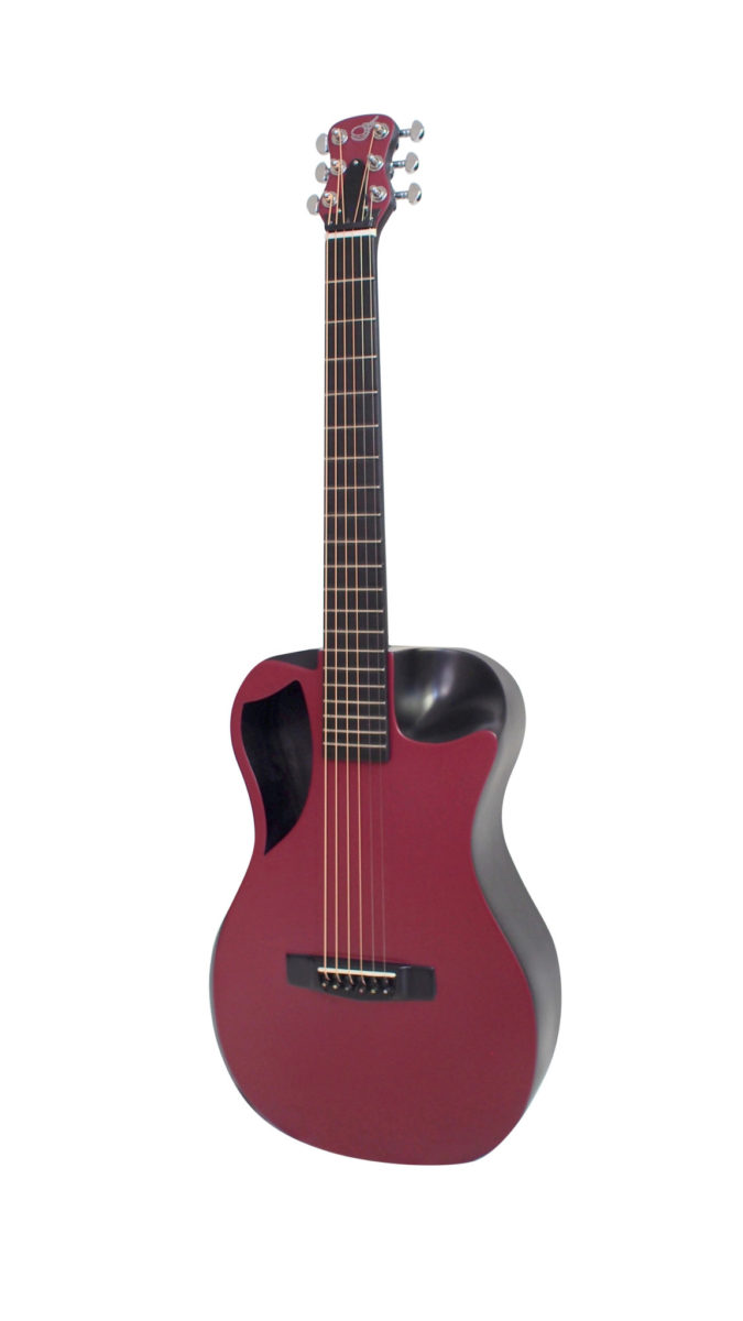 The burgundy top matte  carbon fiber travel guitar collapses to carry-on size of 22*14*9 inches! It assembles in 20 seconds with our patented detachable neck system, and our patented soundboard technology and all-carbon construction create a durable instrument with massive tone. A full 24.5 inch scale, a versatile 1 3/4 nut width, best-in-class components, and a wedged ergonomic design make this the most enjoyable guitar you’ll ever play! Tri-piezo pickup and a full-featured TSA compliant carry-on backpack included.(If viewing product category list, click on product image on the left to view full specs, otherwise scroll down for specs and media.)