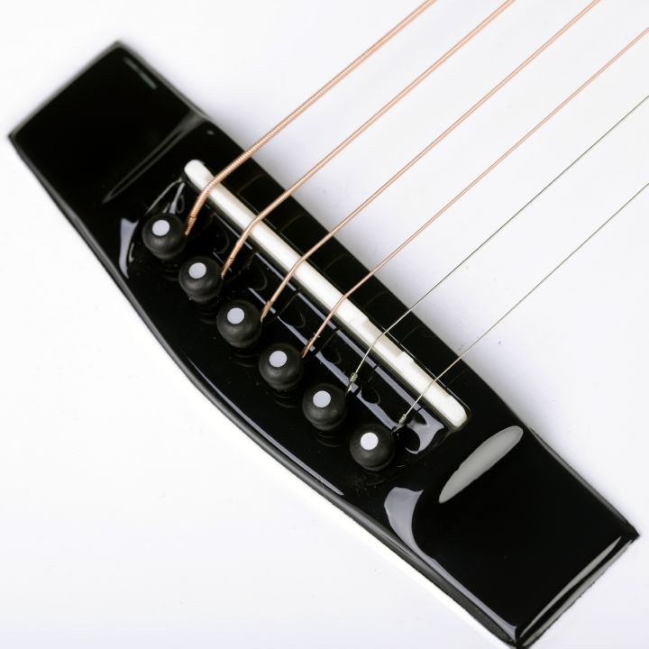 • Bone nut, compensated bone saddle, and ebony bridge pins all help produce the tone preferred by acoustic guitarists.