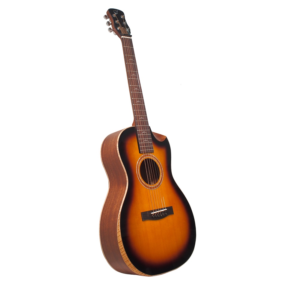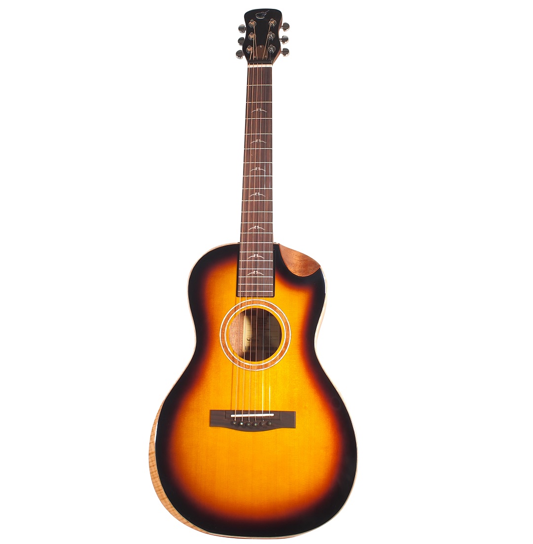 - The wedge design gives a lower shoulder/bout depth that’s deeper than a dreadnought, allowing the Parlor body size to deliver volume and bass surpassing that of a standard Parlor guitar.